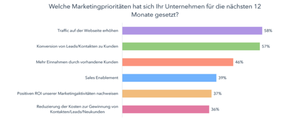 Umsatzsteigernde Ziele sind bereits in vielen Unternehmen Bestandteil der Marketingstrategie. Wie die folgende Grafik zeigt, sollen durch Marketing Maßnahmen neue Kunden generiert werden, mehr Verkäufe unter Bestandskunden und positive Return-of-Investments erzielt werden. Alles umsatzsteigernde Marketing Maßnahmen, deren Erfolg einer effektiven Strategie für die Zusammenarbeit zwischen Vertrieb und Marketing zugrunde liegen.