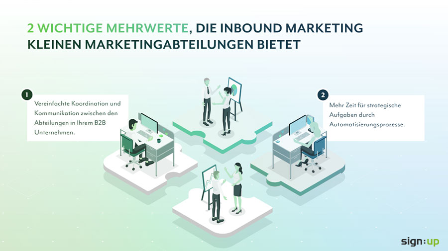 Inbound Marketing entlastet Marketingabteilungen spürbar, wobei kleine Marketingabteilungen in großen Unternehmen ganz besonders von diesem Ansatz profitieren.